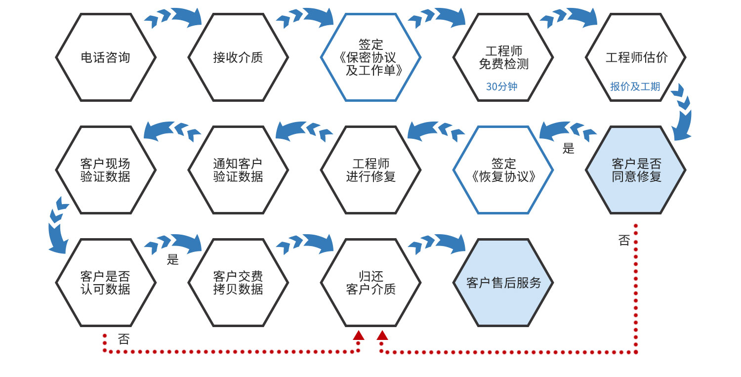 在北京,上海,杭州,深圳,武漢,沈陽等城市設立全國連鎖數據恢復服務,主營業務:硬盤數據恢復、服務器數據恢復,電腦數據恢復、數據修復、硬盤維修、raid、U盤、SSD、數據庫修復、開盤數據恢復...等,解決各種軟硬件引起的數據丟失疑難雜癥,公司秉承客戶服務至上原則,免費檢測,明碼標價,數據恢復不成功不收費!